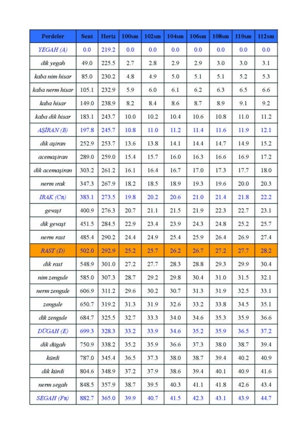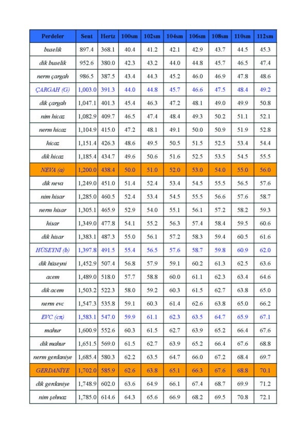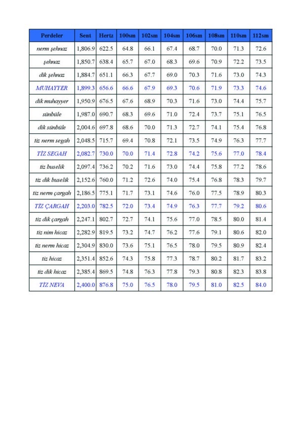 Yarman-36’yı tanburlara uygulamak işten bile değil. Aşağıda buna dair üç sayfalık bir tablo hazırladım:
